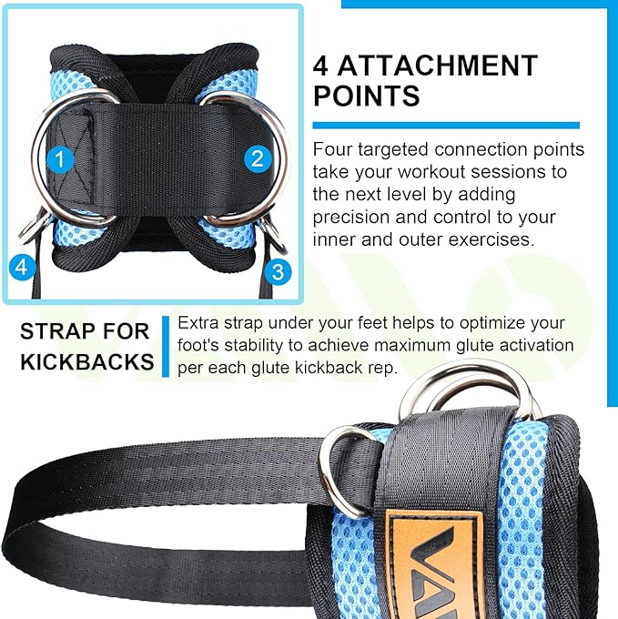 • ARTIFACT OF SPORTS BUFFS: These unique ankle straps will give you the legs of your dreams. Simply wear them and connect them to the cable machine, exercising your thighs, glutes, hips, hamstrings and calves through D-rings around the ankle. Let your legs get a full range of motion, the leg will be more muscular and slimmer!