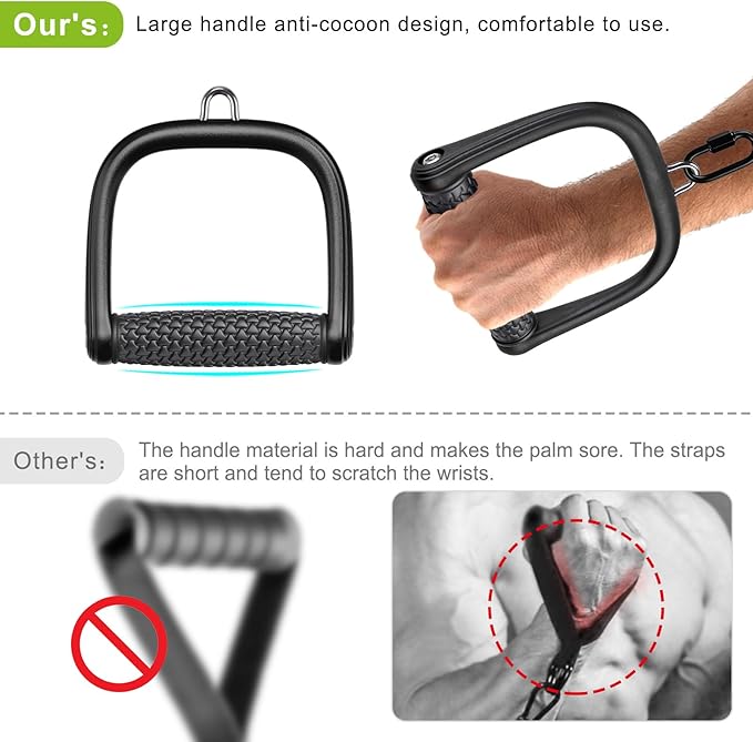 • Create your own home gym by using our workout attachments, all the attachments come with a heavy duty connection that could attach to any universal cable machine gym system, resistance bands, weight pulley system and so on.