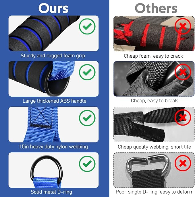 • Ultra Heavy Duty Exercise Handles - Engineered with unwavering strength and durability, our cable handles are built to withstand extremely 600lbs weights. Crafted from strong braided nylon straps, they are built to withstand rigorous workouts and offer long-lasting performance. Solid D-ring handles can maximize your workout performance, allowing you to unleash your full potential!