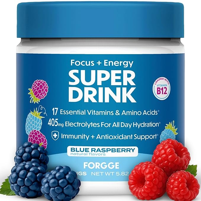 • 5-in-1 Energy Drink Mix - Forgge Energy Drink Powder combines natural ingredients that deliver sustained energy, essential electrolytes, immunity support, amino acid support and help you focus. All in a sugar-free, zero calorie delicious drink.