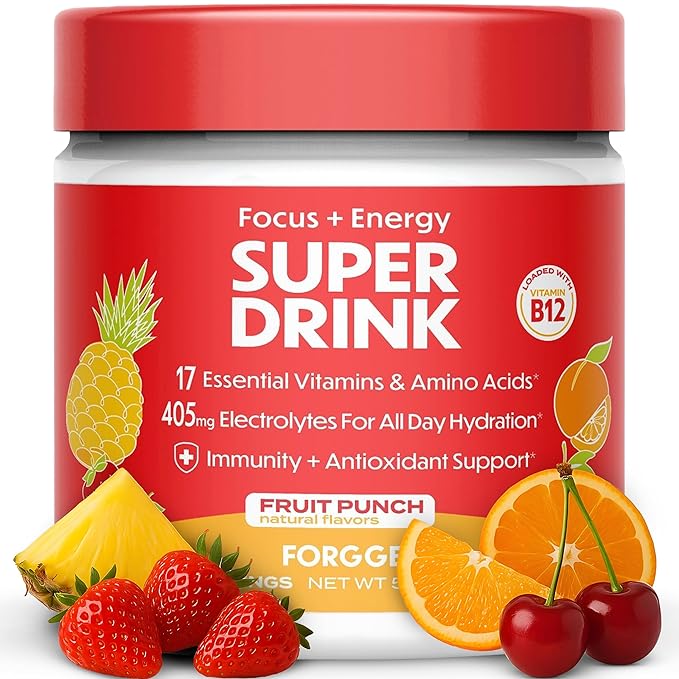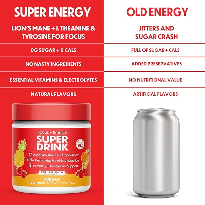• 5-in-1 Energy Drink Mix - Forgge Energy Drink Powder combines natural ingredients that deliver sustained energy, essential electrolytes, immunity support, amino acid support and help you focus. All in a sugar-free, zero calorie delicious drink.