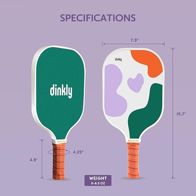 • [Beginner-Friendly] Design for beginners, our 8oz pickleball paddle features 14mm polymer honeycomb for a larger hitting area and lightweight head, providing the perfect balance of speed and power. With a graphite fiber surface and durable edge shield, it offers excellent shock absorption and elasticity, ensuring a smooth, controlled feel for easy play.