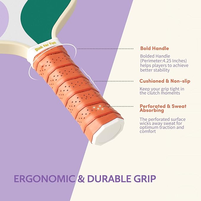 • [Ergonomic & Comfortable Grip] The 4.25 inch handle fits naturally in your hand, enhancing spin and control. With a 4.9 inch length, it increases power on serves. The breathable and anti-slip grip ensures a firm, sweat-free hold during intense play.