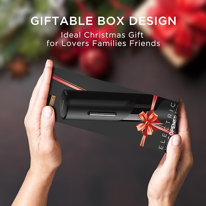 • ELEGANTLY DESIGNED PRESENT SET: The BABONIR Electric Wine Opener Present Set is thoughtfully designed to impress. It includes an exquisite greeting card, making it a perfect present for wine lovers on occasions like New Year, Valentine's Day, Anniversaries, Christmas, Thanksgiving, Mother's Day, Father's Day, Graduations, Birthdays, and more.