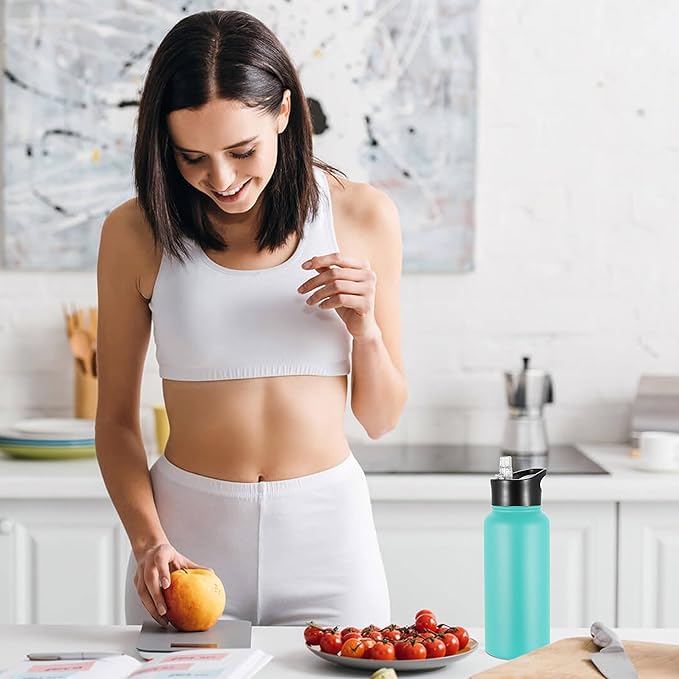 VEGOND 32 oz Insulated Water Bottle Stainless Steel Metal Water Bottles with Leak Proof Straw Lid & Spout Lid, Wide Mouth Double Walled Vacuum Travel Sports Bottle, Mint Green