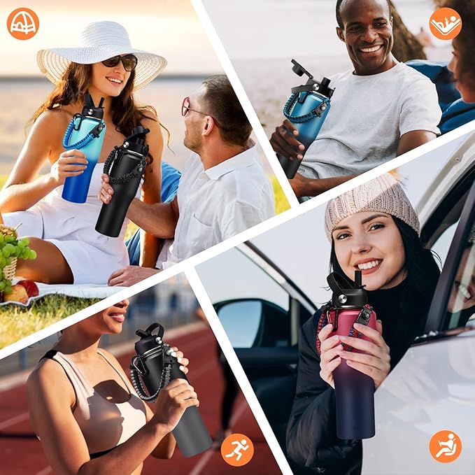 32/40 oz Insulated Water Bottle with straw Fit in any Car Cup Holder, Keep Cold 48H Hot 24H,Stainless Steel Water Bottle with Spout lid, Carrier Bag, Paracord Handle for Gym, Workout & Beach