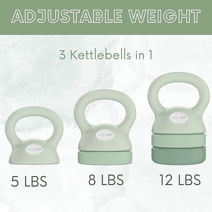 • GOOD FOR BEGINNERS TO PROS | 3 KETTLEBELLS IN 1. No need to purchase several kettlebells everytime you change your exercise routine! Polyfit's Adjustable Kettlebell is easy to adjust, perfect for any fitness newbie or for the enthusiast looking to challenge themselves a little more. With weights that you can easily add or remove, you can choose from 5 lbs, 8 lbs, or 12 lbs.