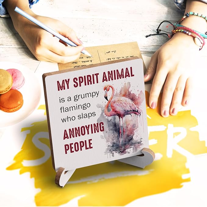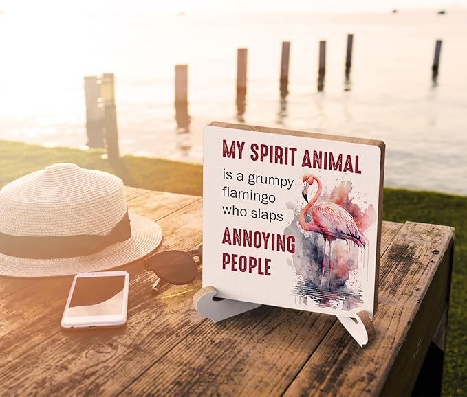 Flamingo Gifts Funny Flamingo Decor Rustic Wooden Desk Decor for Flamingo Lovers Home Farmhouse Office Bathroom Table Tiered Tray Shelf Seasonal Plaque with Wood Stand Holder
