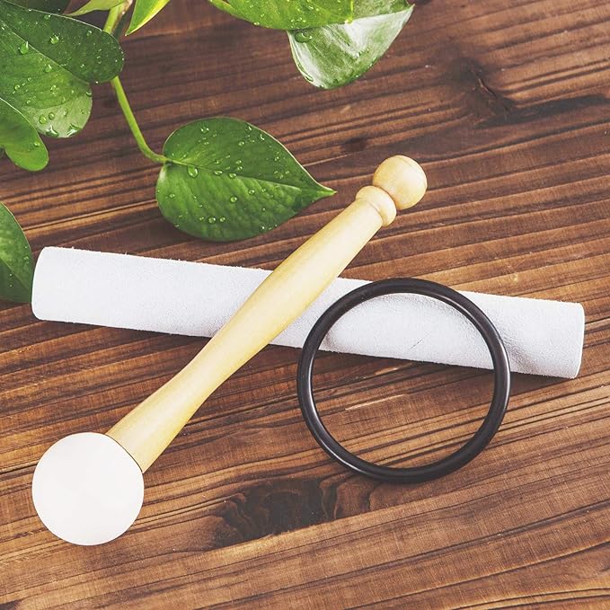 • Package includes: 1 * 8 inch wide blue lotus design colored rim high quality crystal singing bowl, 1 * thick cowhide suede striker, 1 * rubber mallet, 1 * one O-ring