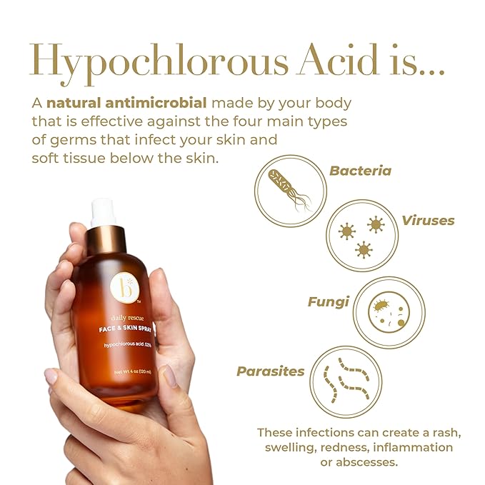 • ✅ REDUCES REDNESS: Our hypochlorous acid spray for skin is a natural agent that helps to reduce redness caused by acne, rosacea, and other skin conditions. This all-natural, product is fragrance-free and made at a pH of 5.7 (the same pH as healthy skin) to ensure it is incredibly gentle for all skin types.