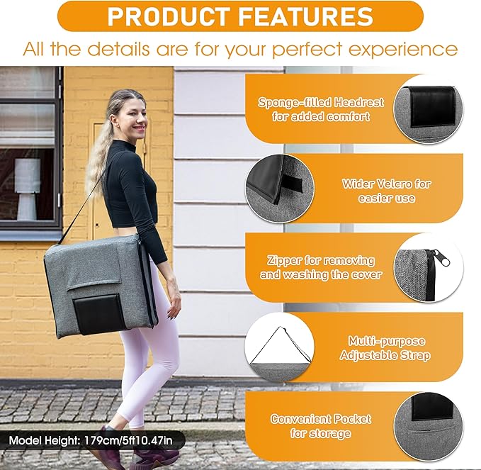 • 𝐖𝐈𝐓𝐇 𝐅𝐎𝐋𝐃𝐀𝐁𝐋𝐄 𝐅𝐔𝐍𝐂𝐓𝐈𝐎𝐍 - Considering the user's portability, we designed the foldable function. After folding the chair in half, you can easily store it in the corner of your home, or it can be fully unfolded and placed under the bed or sofa without taking up extra space. At the same time, the floor chair is equipped with adjustable shoulder strap, which is very convenient to carry outdoors to participate in various activities. The zippered pocket on the back is designed for easy storage.