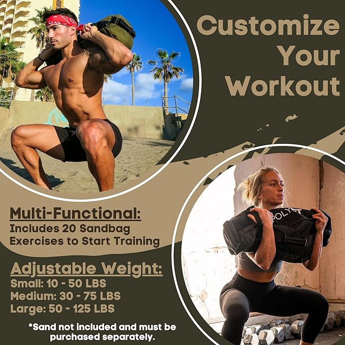 • 【AVAILABLE IN 3 SIZES | SANDBAG FOR WORKOUT】Polyfit’s fitness sandbag comes in 3 sizes: Small (10-50lbs capacity), Medium (30 - 75lbs capacity), and Large (50-125lbs capacity).