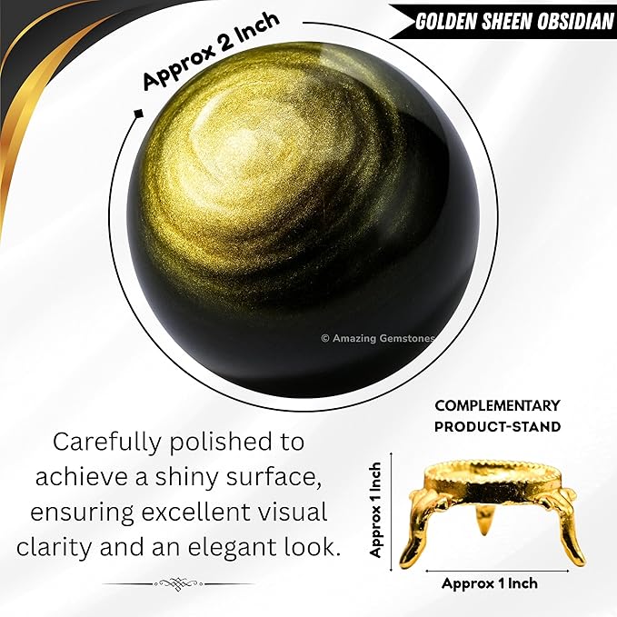 • Natural - Crystal Spheres are made of authentic Golden Sheen Obsidian Crystals and Crystal Sphere Stand is made of brass.