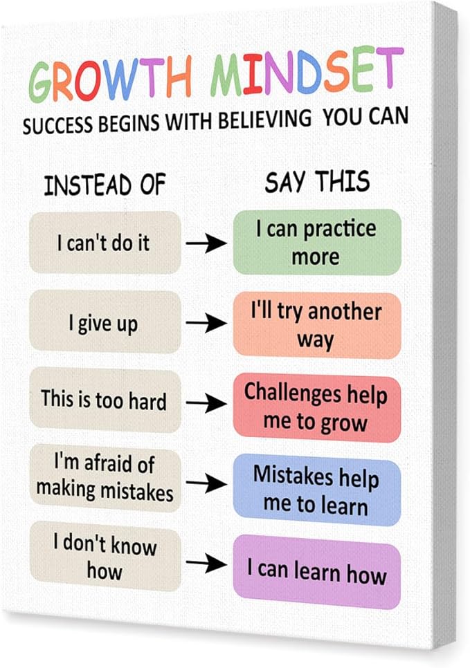 LISTNGBO Mental Health Canvas Wall Art,Growth Mindset Motivational Quote Therapy Artwork Painting Prints Poster Ready to Hang for Counselor Therapy Office School Wall Decor Treatment Decor,12x15 Inch