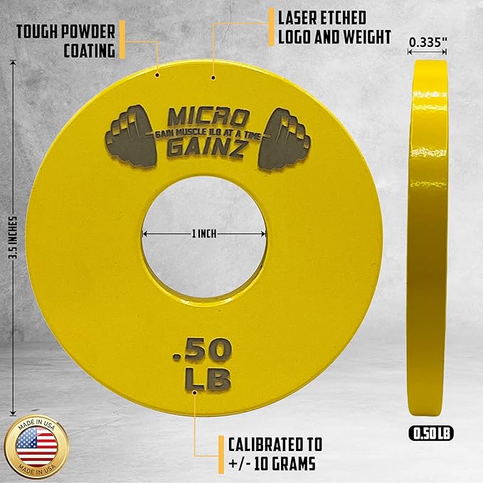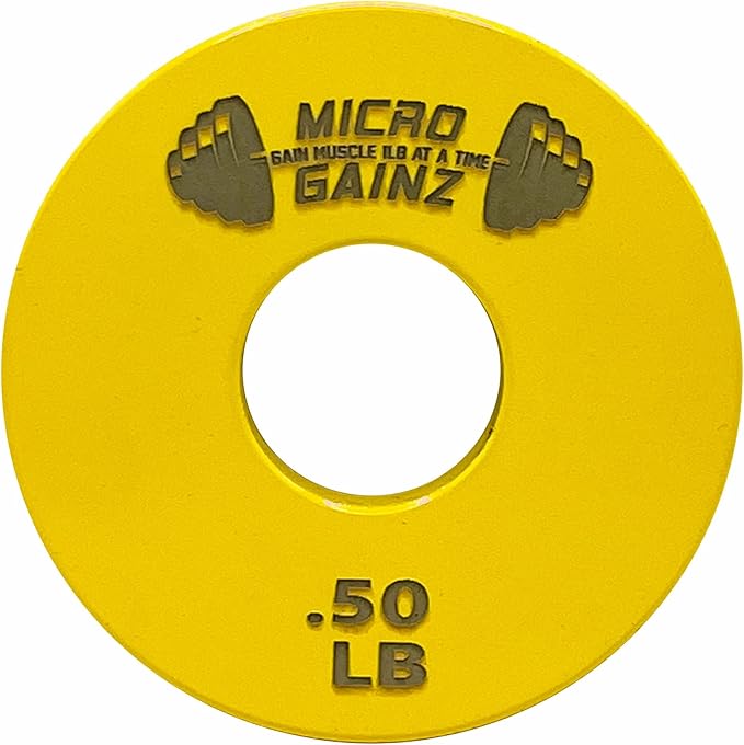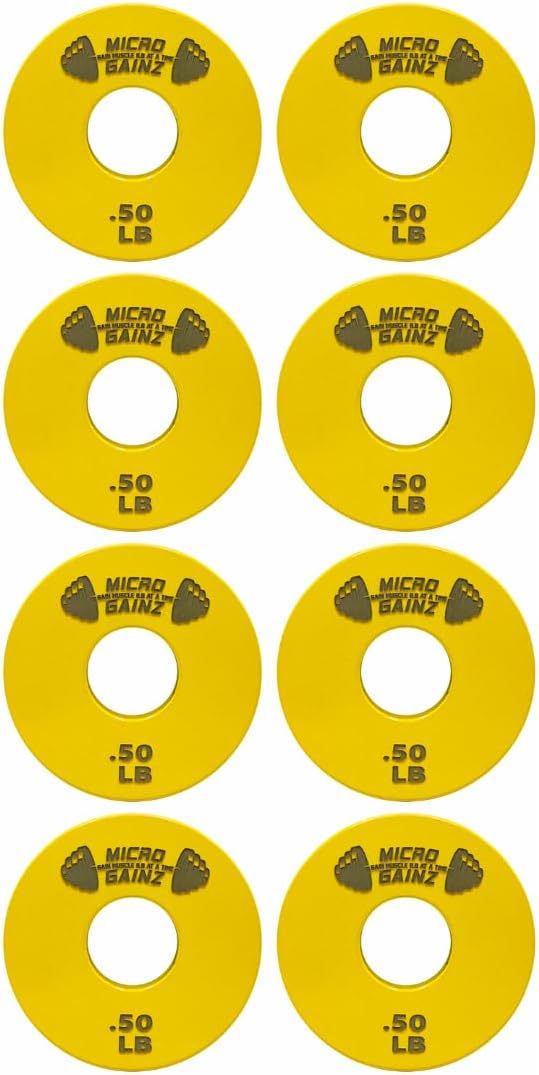 Micro Gainz Standard 1-Inch Center Hole Yellow .50LB Fractional Weight Plates 8 Piece Set- Designed for Standard 1-Inch Barbells and Dumbbells, Made in USA