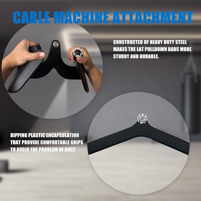 • Reliable Quality:Constructed of heavy duty steel makes the LAT pulldown bars more sturdy. Without worrying about fracture problems. Dipping plastic encapsulation that provide comfortable grips to avoid the problem of rust and discomfort caused by prolonged hand grips