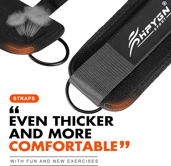 • 【COMFORTABLE AND SKIN-FRIENDLY】HPYGN glute kickback ankle straps are made with neoprene padding that is super soft and breathable and will not hurt your skin or cause discomfort. Thicker 8mm padding can effectively provide cushioning, reducing the pressure on the body, so you can be more comfortable during the workout. ankle straps for women men, adjustable size, whether it is a thin ankle, or a fat ankle, it can be a perfect match!