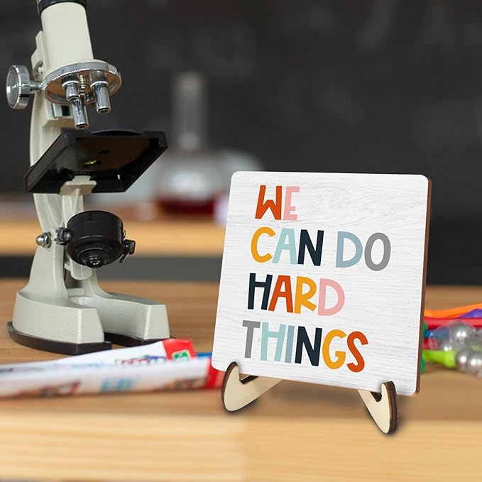 Decorative Desk Decor Motivational Affirmations Plaque with Wooden Stand Inspirational Mental Health Wood Sign for Office Nursery Homeschool Classroom Education Reading Corner Table Shelf