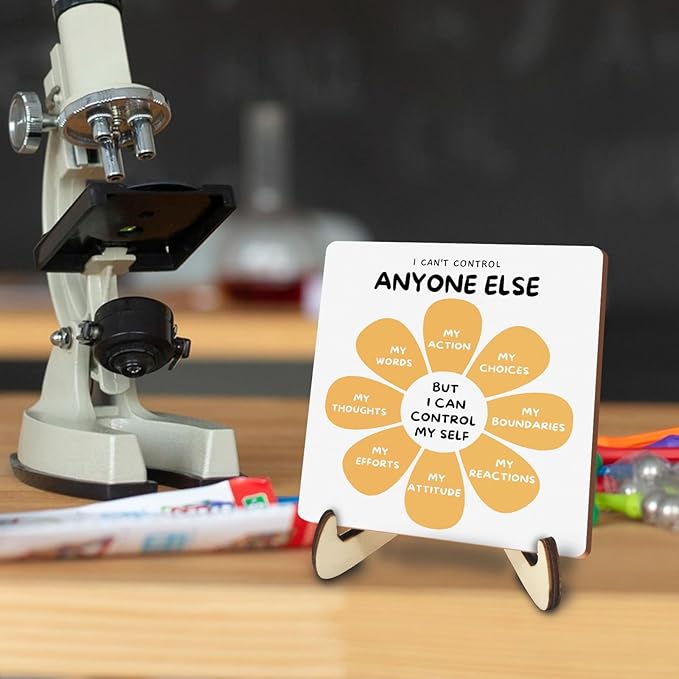 Decorative Desk Decor Mental Health Therapy Office Decor Plaque with Wooden Stand Inspirational Wood Sign for Home Office School Psychologist Counselor Psychology Calm Down Corner Table Shelf