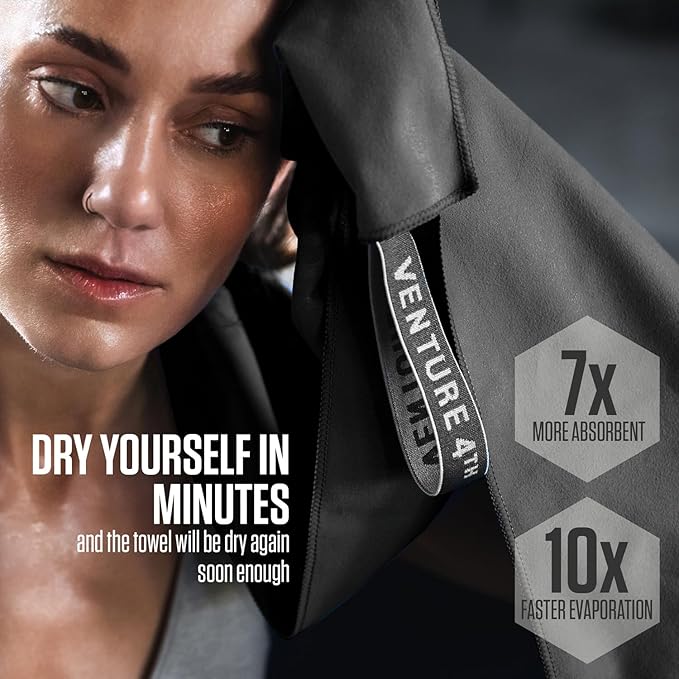 VENTURE 4TH Quick Dry Towel. Microfiber Travel Towel Ideal for Camping, Hiking, Backpacking, Gym. Lightweight & Fast Drying Travel Towels for Body. Compact & Easy to Pack - Black Extra Large