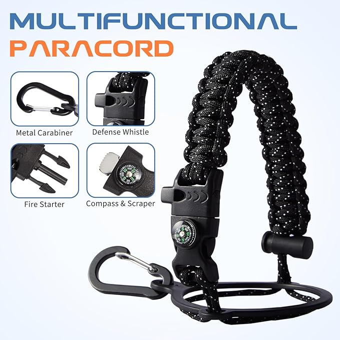 • PROTECTIVE BOOT & SURVIVAL PARACORD: Upgraded silicone boots prevent shattering and cracking when 128 oz water bottle accidental dropped. Humanized paracord handle for water bottles with compass, safety ring, carabiner, flint fire starter & whistle to be a perfect survival kit for adventure. Both design in individual styles to match the color of water canteen, stylish and practical in your daily use