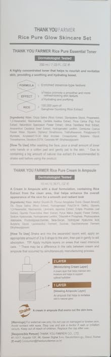• [RICE PURE ROUTINE] Exclusive Korean Rice Extract made by THANKYOU FARMER - We have worked with local farmers to consistently harvest high-quality rice for making Rice Extract. Rice grown in 100% clean, pollution-free area. After harvesting, we extract active ingredients using low-temperature technology that does not destroy the rice's beneficial nutrients.