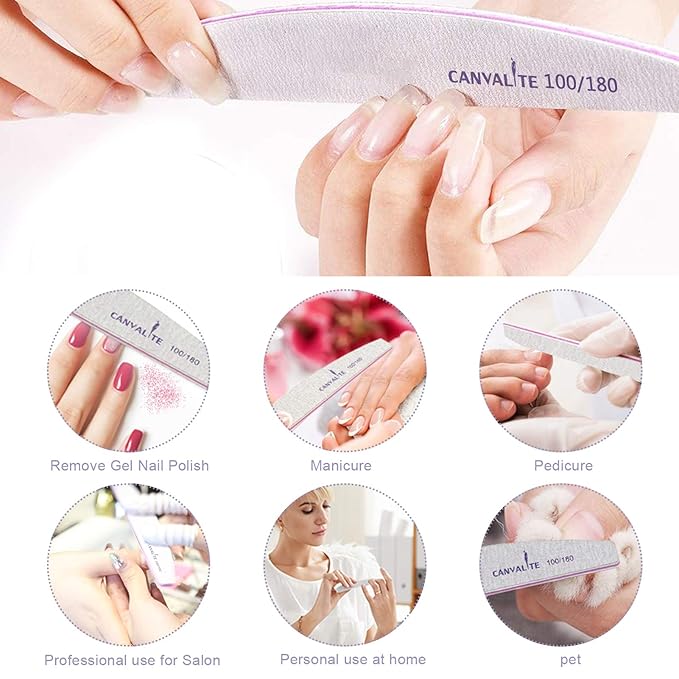 Canvalite 50 PCS Nail File Professional Nail Files Reusable Double Sided Emery Board(100/180 Grit) Nail Styling Tools for Home and Salon Use