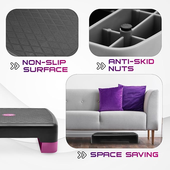 • MULTI BENEFIT WORKOUT EQUIPMENT: Offer a multitude of benefits such as building strength, maintain your body weight, tone and elevating flexibility; The mini step riser is ideal for all ages & fitness levels