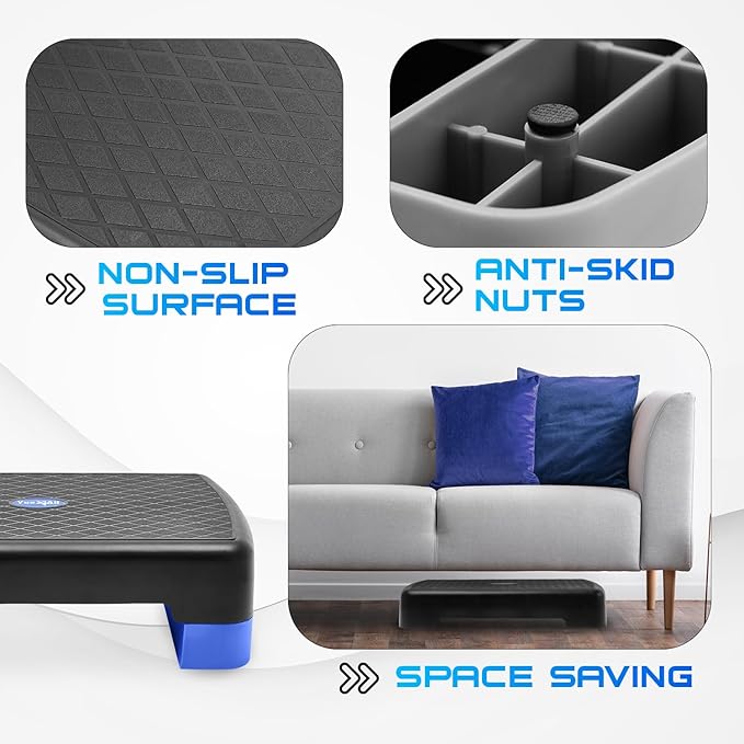 • MULTI BENEFIT WORKOUT EQUIPMENT: Offer a multitude of benefits such as building strength, maintain your body weight, tone and elevating flexibility; The mini step riser is ideal for all ages & fitness levels
