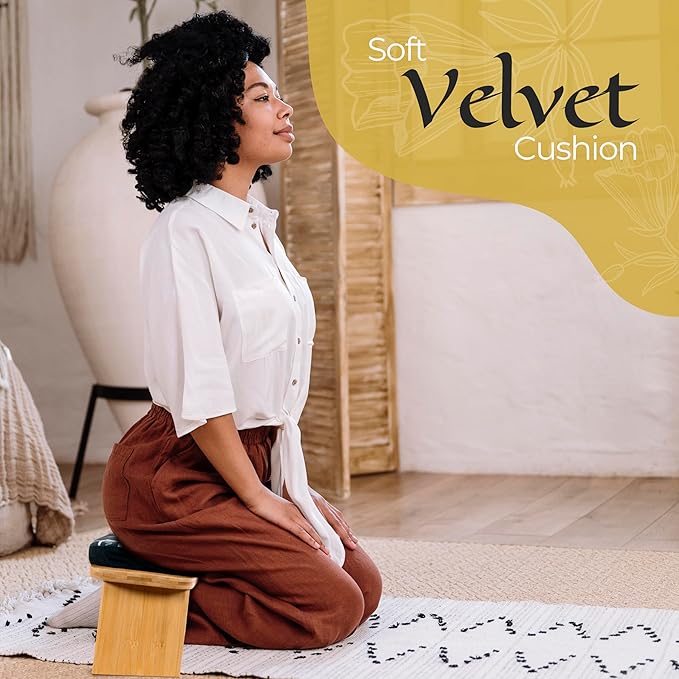 • 𝐂𝐎𝐌𝐅𝐎𝐑𝐓𝐀𝐁𝐋𝐄 𝐂𝐔𝐒𝐇𝐈𝐎𝐍𝐈𝐍𝐆: The kneeling prayer bench includes a comfortable cushion that enhances support for the knees and legs while meditating. This added cushioning reduces pressure points, allowing you to sit or kneel for longer durations without discomfort. By enhancing comfort, the cushioning helps you to focus better on their meditation practice.