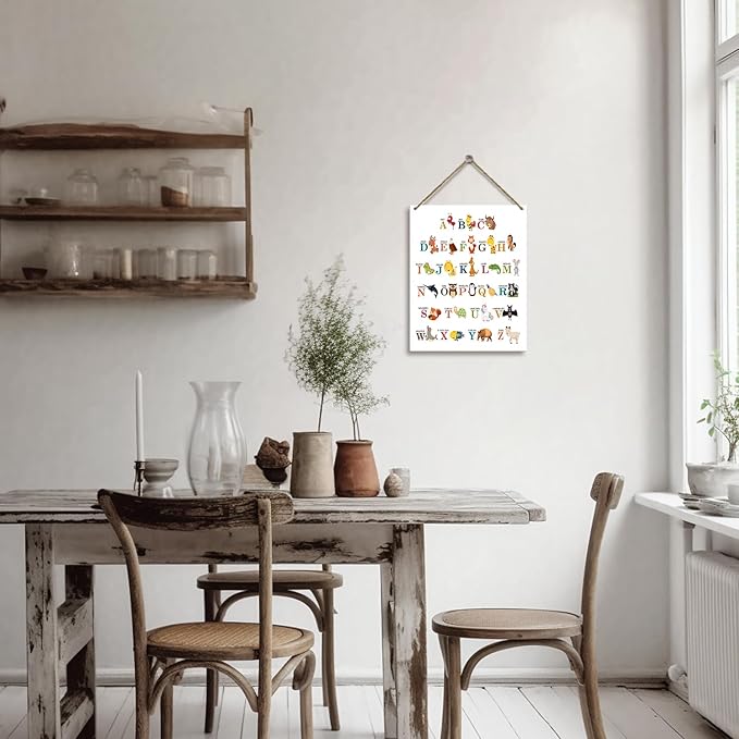 Animal Alphabet Educational Gift for Girl Boy Daughter Son Teacher Gift Hanging Plaque With Rope Home Wall Decor Sign for Nursery Bedroom Playroom Classroom School -38