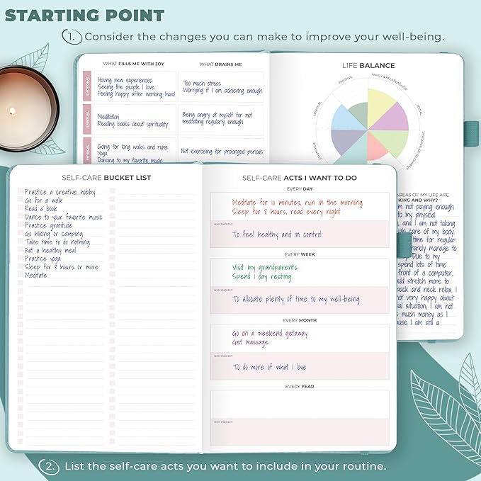 • BUILD A HAPPIER & HEALTHIER MINDSET FOR YEARS TO COME: This self care notebook is filled with prompts, open-ended questions, wellness trackers, and many other tools to help you pinpoint the changes you can make to improve your well-being.