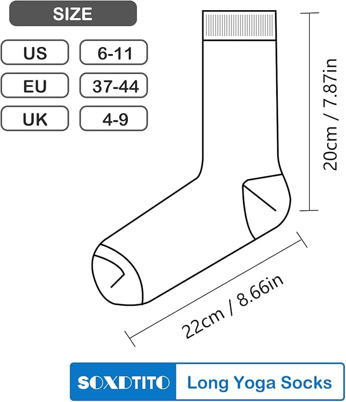 • 【Non-Slip Grips】Featured by sticky dots on the bottom of the non-slip yoga socks, our anti-skid socks offer better grip for improved stability & balance so that you can stay safe, avoid injuries and have better control of your body movements. Grips are made of soft and flexible silicone. They will not crack no matter how much you pull and guarantee durability and good firm.