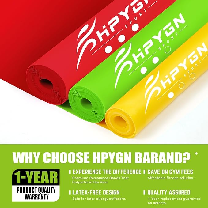 • 【Different Level of Resistance】- The workout bands is divided into 3 different levels of resistance:Yellow band(Light, 0.35mm), Pink band(Medium, 0.45mm), Blue band(Heavy, 0.55mm).Never worry about the exercise bands too too hard, easily switch between the 3 levels to your preference anytime.