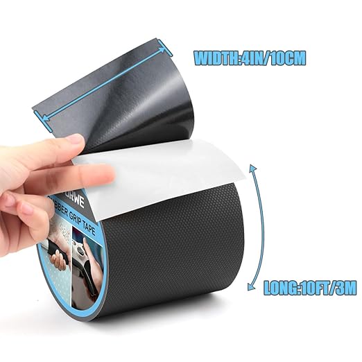Rubber Grip Tape, Ultra-Thin Strong Adhesive Anti-Slip Waterproof Heat Resistant Wear-Resistant Cushion Pad, Making Handles or Contact Surfaces Safer, with Grip and Comfort (Black, 4In x 10Ft)
