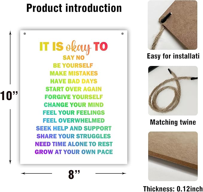 • Beautiful Design: This mental health therapy decorated wooden sign plaque made of positive affirmations language and vivid patterns is beautiful and generous and has good decoration.