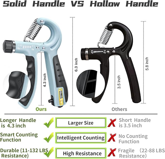 • Smart Counting Grip Strengthener: Features a built-in counter that tracks progress during each session; no batteries required; simply press to count and rotate to reset, helping you achieve your fitness goals effectively