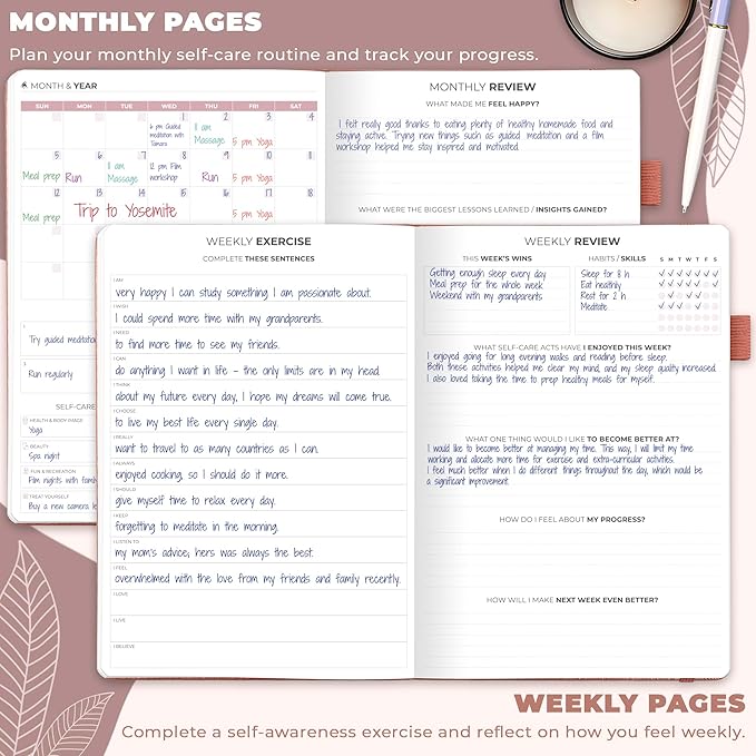 • BUILD A HAPPIER & HEALTHIER MINDSET FOR YEARS TO COME: This self care notebook is filled with prompts, open-ended questions, wellness trackers, and many other tools to help you pinpoint the changes you can make to improve your well-being.
