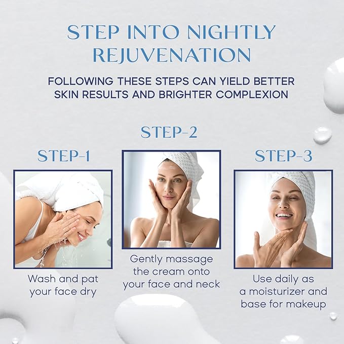• EXCEPTIONAL INGREDIENTS: Formulated with high-quality ingredients, our Night cream combines the power of Hyaluronic Acid and Collagen to provide superior hydration and anti-aging benefits. Indulge in a moisturizer that delivers visible results.