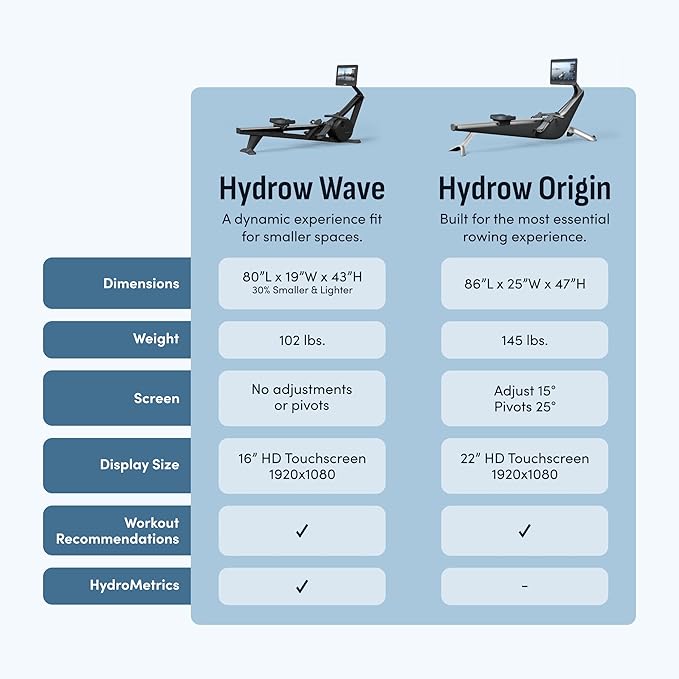 Hydrow Wave Rowing Machine with 16" HD Touchscreen & Speakers - Foldable | Live Home Workouts, Subscription Required