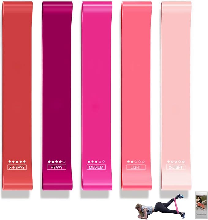 • 🍑HIGH END EXERCISE BANDS- professional resistance loop bands includes 5pcs different levels , they are all 12in length and 5in width, but different thickness. According to your training needs at different stages, you can match the exercise bands with the appropriate resistance level, So Whether you are a fitness beginner, or a exercise warrior, Our workout bands will be your perfect choice.