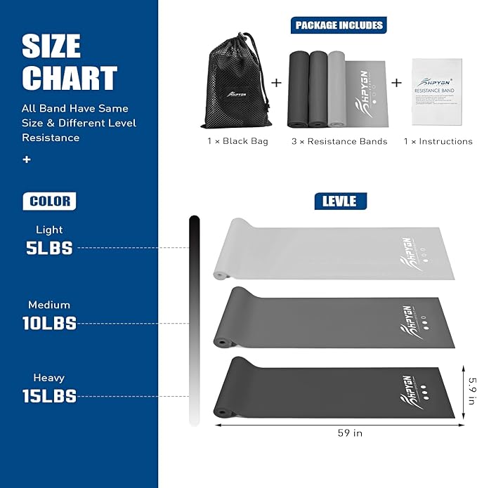 • 【3 Level Resistance】3 versions workout bands for stretching, muscle toning, improving balance, conditioning & rehabbing muscles.Color-coded Progressive Resistance system allows users to recognize improvement as it happens, as you grow stronger you can move up to the next color!