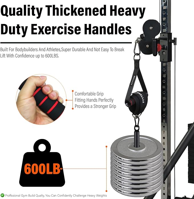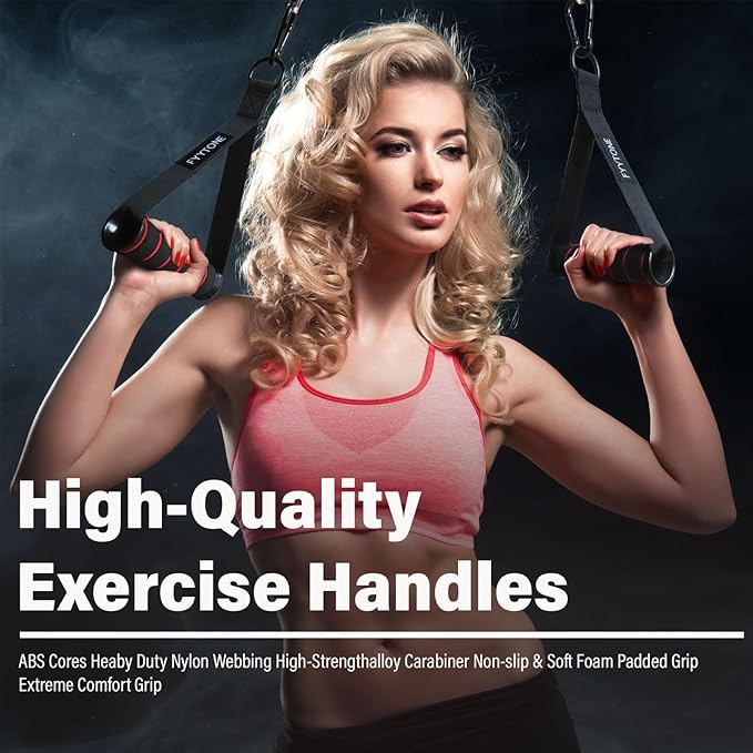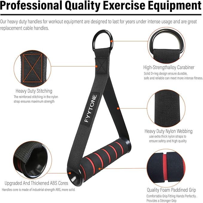 • ✅【HEAVY DUTY EXERCISE HANDLES】- Ultra durable heavy duty exercise handles, made with durable ABS core grips and reinforced stitching in a Strong braided nylon straps, and steel D-ring, won’t break even after a long time of use and are great replacement cable handles.