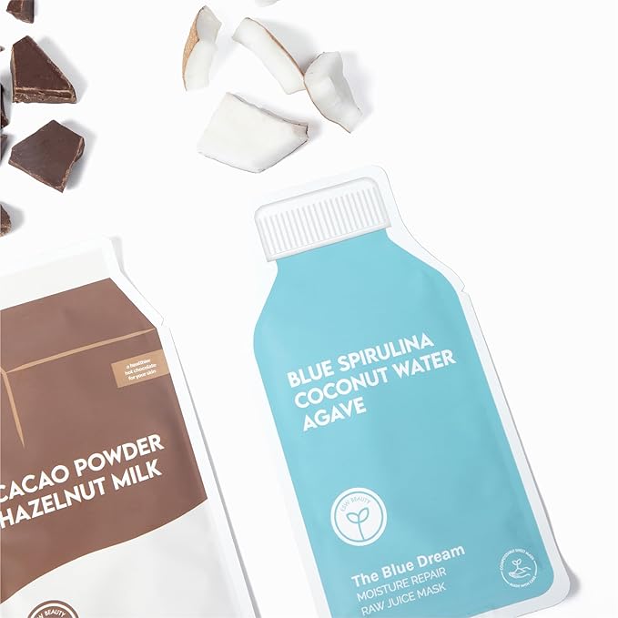 ESW Beauty The Blue Dream - Moisture Repair Raw Juice Face Mask (6-Pack) - Hydrating with Blue Spirulina, Coconut Water & Agave for Dry, Sensitive Skin - Replenishes & Fights Aging