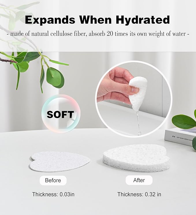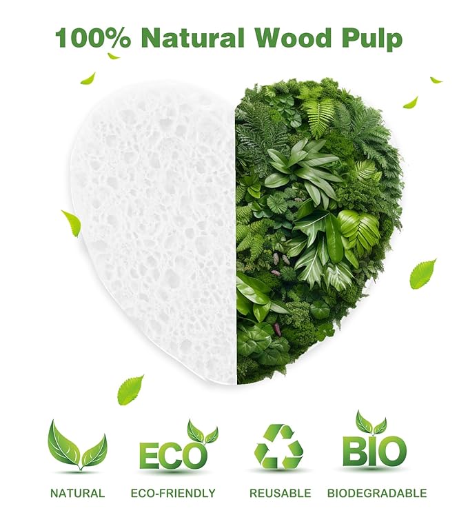 • 【NATURAL & Safe】: Made of 100% natural sponge extracted from wood pulp, environmentally friendly, good absorbency and no irritation to skin.