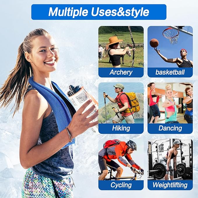 • Multi-Functional:You can carry cooling towel during outdoor activities such as hiking, swimming, running, archery, camping, backpacking, cycling, yoga, golf, fitness, fishing, basketball, football, rugby, tennis, volleyball, boxing, traveling, climbing, weightlifting and more.