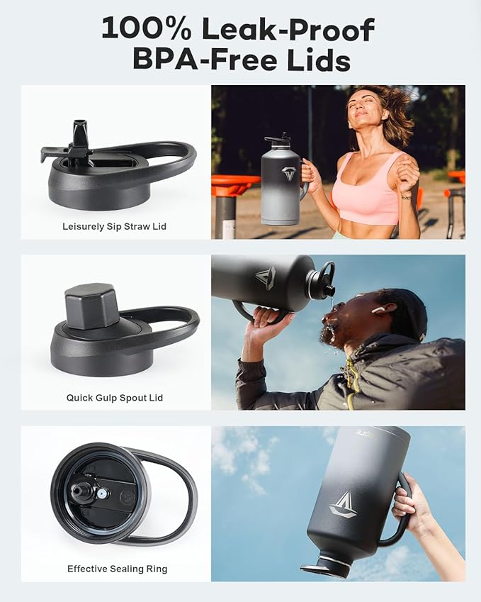 • No Leakage, No Spills: Our stainless steel water bottles comes with a dust-proof flip straw lid and a spill-free spout lid, both 100% leak-proof and spill-proof. The two lids showcase a vibrant color-contrast design, harmonizing with the bottle body's color and adding an extra touch of allure.
