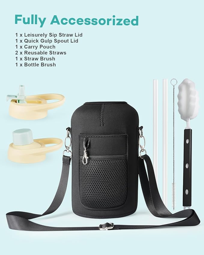 • Hassle-Free Experience: Included with 2 lids, 2 straws, 1 straw brush, 1 bottle brush, and 1 carrying pouch, Topre water jug is fully accessorized to handle any tricky situations. Just choose your style from three capacities (40/64/128).