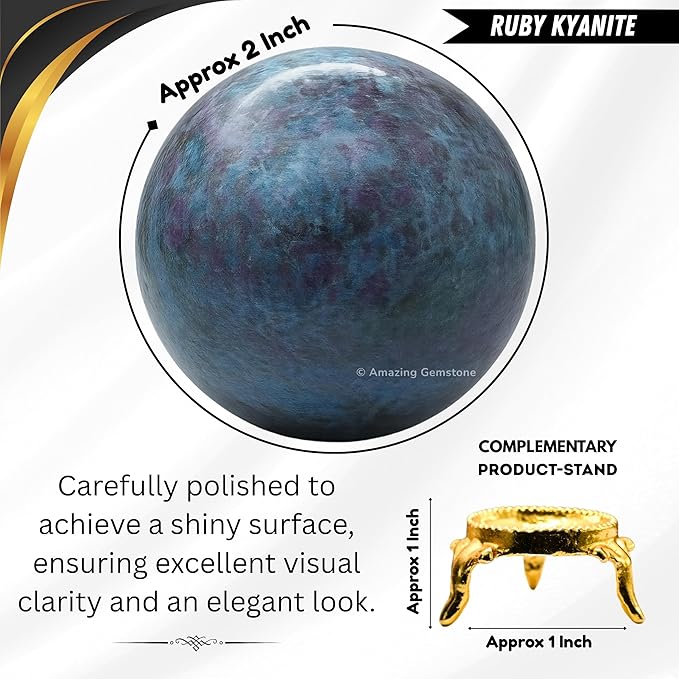 Amazing Gemstone Ruby Kyanite Crystal Ball with Stand - 2 Inches Crystal Sphere Meditation Balls for Witchcraft and Decorative Balls