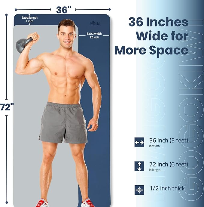 • 【Extra Space for Extra Comfort】 With a size of 72 x 36 inches, our extra large yoga mat is 50% wider than traditional mats, offering ample space for men and plus-size women to move freely and comfortably during their workout